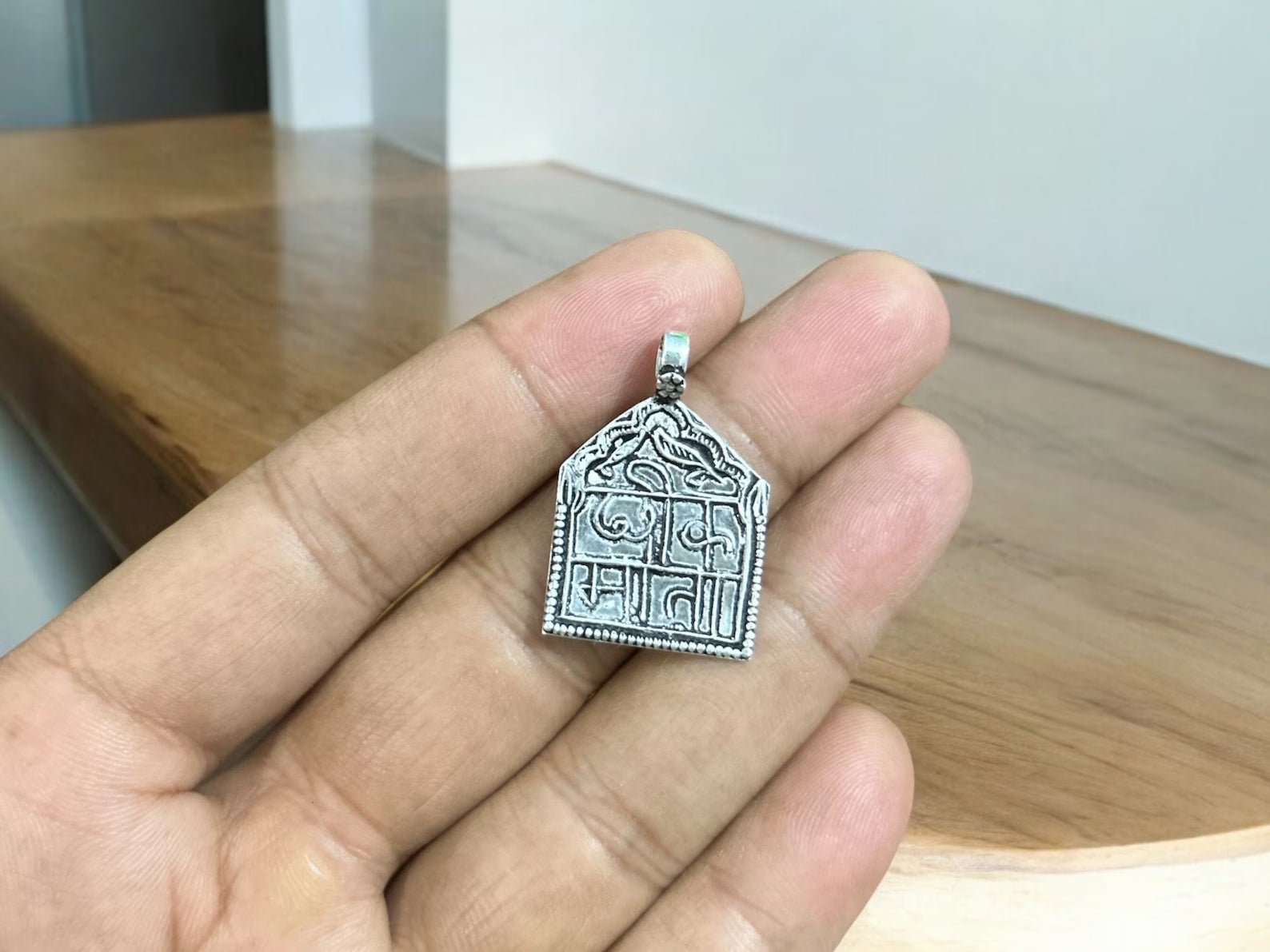 Handmade 925 Sterling Silver Kids Protector Hindu Goddess Cheek Mata Pendant Hindi Letters Rajasthan Tribal Pendant, Children Protector